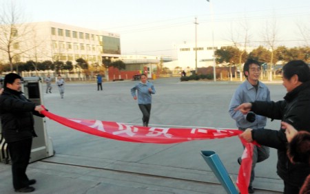 這是公司工會舉辦的第四屆長跑比賽,雖然天氣有些寒冷,但員工們的比賽熱情絲毫不減。比賽開始,工會主席張玉琴為大家鼓舞動員、講解規(guī)則,之后由副總經(jīng)理王興春發(fā)令比賽開始,比賽過程中大家奮勇拼搏,爭先恐后,都努力將自己堅強的一面展示出來。經(jīng)過激烈的角逐,生產(chǎn)部的楊大帥、翟海波,營業(yè)部的霍宏越取得男子組前三名,女子組的前三名分別是研發(fā)部的高俊娟、質量部的張洪蕓和生產(chǎn)部的李芹。