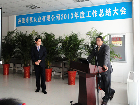 王總在講話中用詳實的數(shù)字,明晰的圖表,做了細致地分析和總結(jié)。對2012年之前的工作做了主觀和客觀的原因分析。在2013年的工作總結(jié)中,王總用成績和不足來概括:在2013的工作中,營業(yè)工作取得比較突出的成績,取得了訂單創(chuàng)新高;百萬機組項目100%容量訂單的簽訂等亮點,特別可喜的是,在EPC印尼項目中,鍋爐給水泵、循環(huán)水泵、凝結(jié)水泵一次性簽單,這在公司歷史上乃至行業(yè)中都是很少見的。在生產(chǎn)方面:發(fā)貨臺數(shù)創(chuàng)公司歷史之最;車間5S管理取得良好進展;產(chǎn)品不合格率得到有效控制。在其他方面:公司采購引入比價采購環(huán)節(jié),降低采購成本;C型泵的改善方面,提高采購批量,降低采購價格,滿足生產(chǎn)各環(huán)節(jié)的需要。不足之處:營業(yè)方面行業(yè)訂單結(jié)構(gòu)不平衡;生產(chǎn)環(huán)節(jié)中生產(chǎn)秩序的保證、外購件的合格率以及設(shè)計出圖的時間有待改善;ERP環(huán)節(jié)錄入數(shù)據(jù)的及時性、準確性方面還有待提高等等。