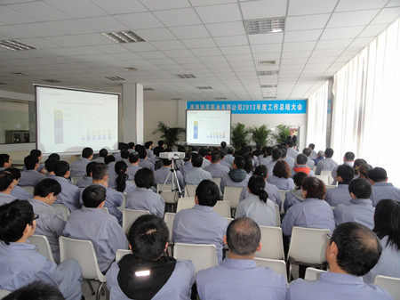 總經(jīng)理王正軍先生的講話共分四個部分:一是對公司成立之初2007年到2012年公司的經(jīng)營情況做了回顧,二是對2013年的工作進行總結(jié);三是對2014年----2016年的中長期規(guī)劃做了展望;四是對2014年的的經(jīng)營計劃進行了安排。