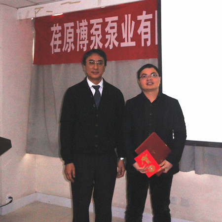最后,對(duì)2012年度優(yōu)秀業(yè)務(wù)員――高文旭、優(yōu)秀技術(shù)工程師――夏紅軍進(jìn)行了表彰,總經(jīng)理志賀進(jìn)先生親自為他們頒發(fā)了證書及獎(jiǎng)金。